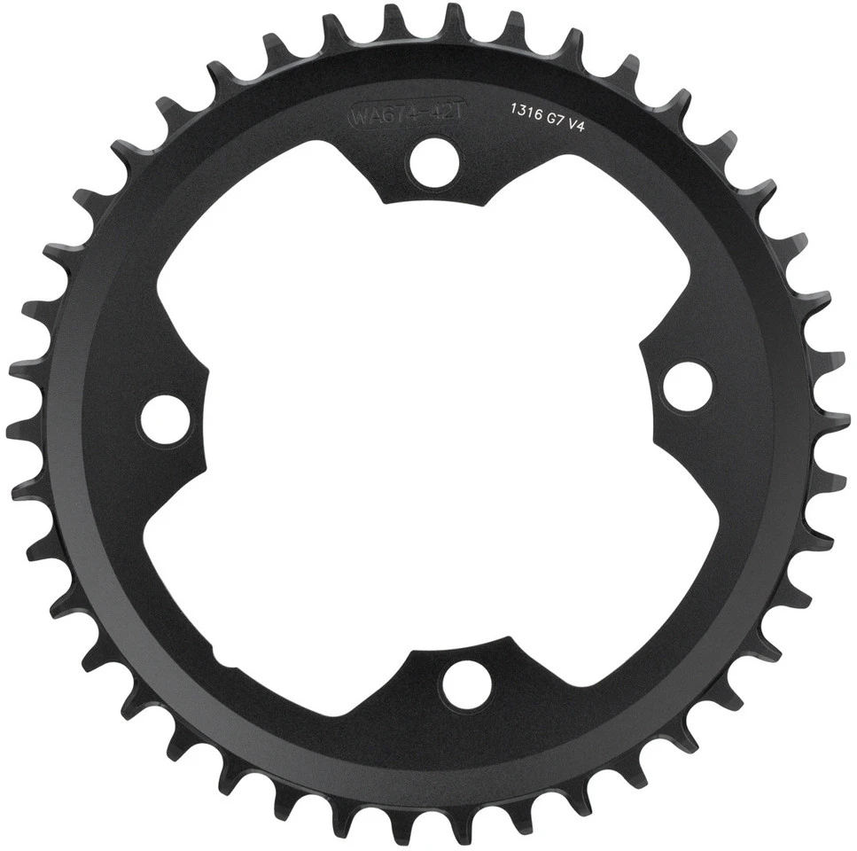 Spezifikationen:Einsatzbereich:RoadBefestigung:110 mm Lochkreis, 4-Arm asymmetrischZähne:42Z, 44ZSchaltstufen:1×11-fachTechnische Daten :Material:Aluminium (7075-T6)Features:für SRAM und Shimano 1×11-fach AntriebeCNC-bearbeiteteloxiertMegaTooth: dünne und dicke Kettenblattzähne abwechselnd verhindern KettenabwurfAusführungen:42 Zähne: