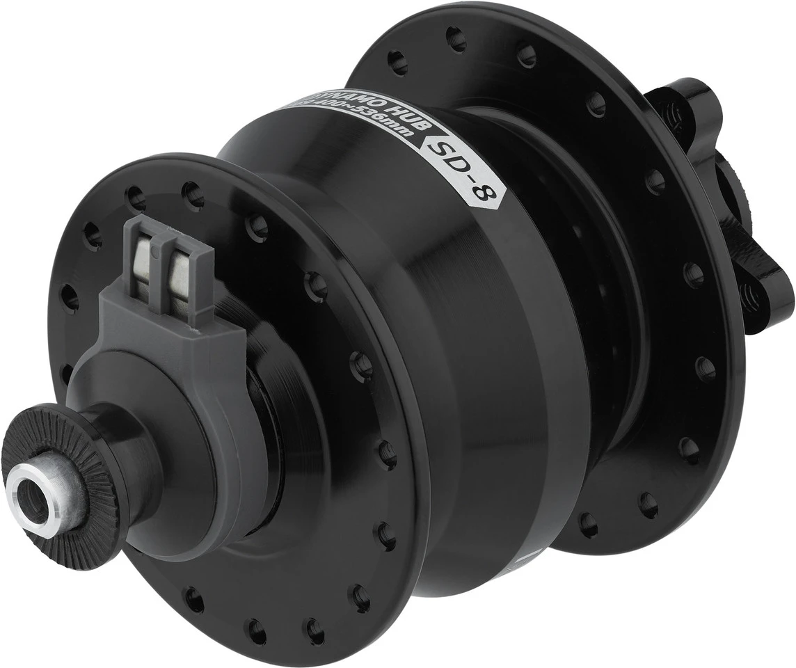 Der Shutter Precision SD-8 Disc 6-Loch Nabendynamo besteht aus zwei intelligent miteinander verbundenen Nabenhülsen, was für besondere Belastbarkeit sorgt, ohne die aufgeräumte Optik zu beeinträchtigen.